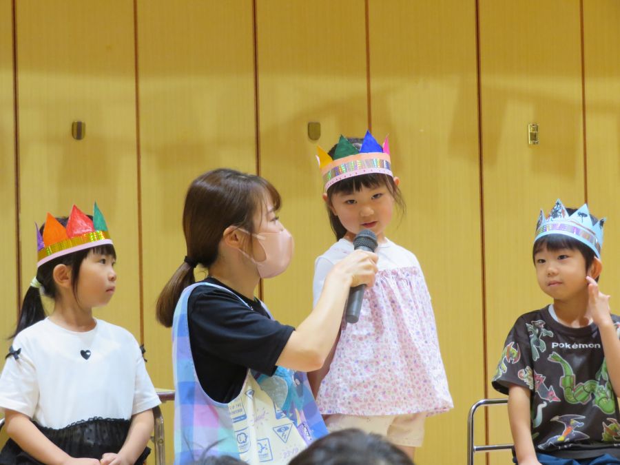 2025年09月18日(木) 9月生まれの誕生会(4.5歳) 9月生まれの子お誕生日おめでとう!! シルエットクイズをしました。 身近な物を上や横の様々な角度から見てどんな物か当てていましたよ。 当たった時には大喜びでした。 インタビューにもしっかり答えていくことができました。 園長先生からのプレゼントももらい、みんなでお祝いすることができました。 もどる