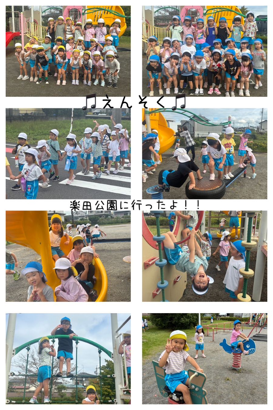 3歳児は北消防署まで、4・5歳児は楽田公園へ行きました。