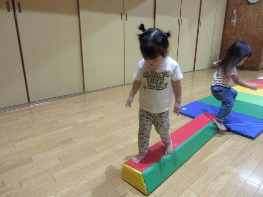 2025年10月18日(土) 第6回にこにこわんちゃんクラブを開催しました。 にこにこワンちゃんクラブを行いました。 運動会ごっこをしました。保育園のお兄さんお姉さんと、一緒に体操をして、開幕です。 「よーいドン!」とかけっこをしたり、障害物競走をしました。トンネルをくぐったり、平均台を渡ったり、跳び箱の山を登ったりと、たくさんからだを動かし、楽しむ事ができました。 もどる