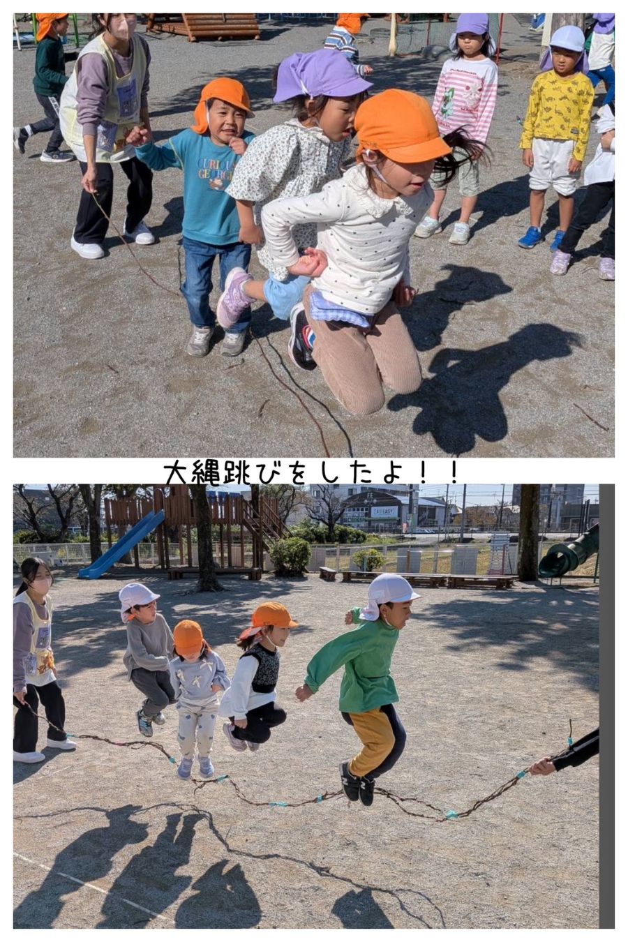 5歳児さんは、さつまいものツルを使って、大繩をしたり、綱引きをしました。芋のツルを編むところから行いました。大繩では、何回飛べるか挑戦してみたり、綱引きで、力比べをして、芋ほりから、ツルで遊ぶとお芋で楽しむことができました。