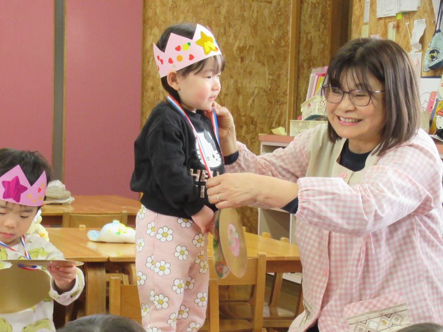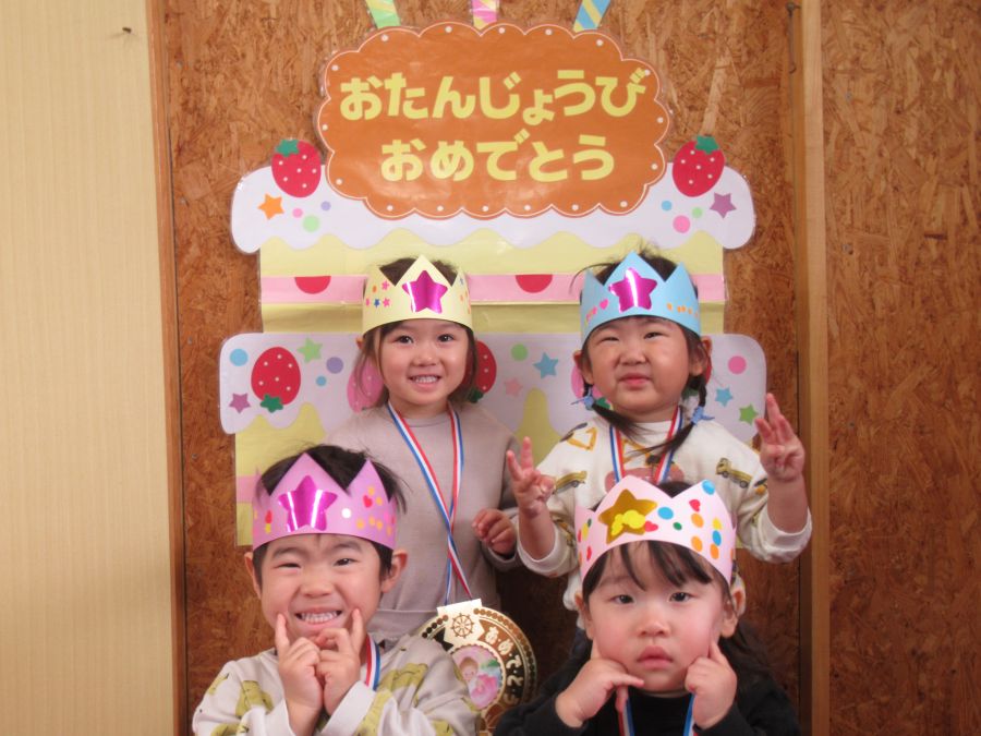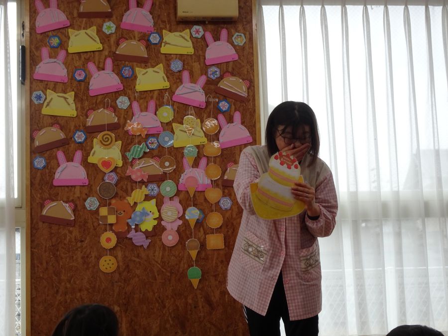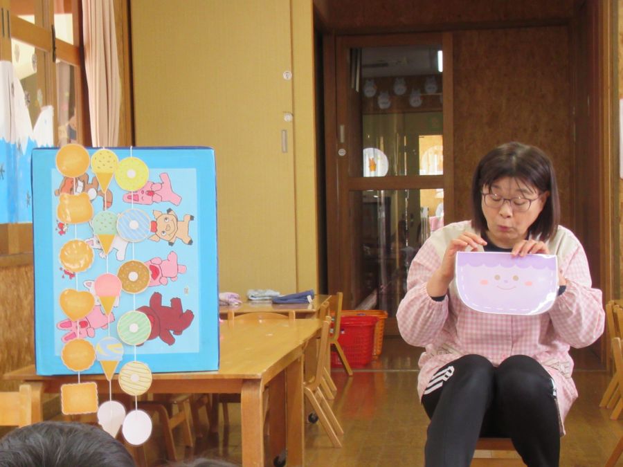 2026年02月03日(火) 1月生まれの誕生会(3歳・未満児) 1月生まれのお友達、お誕生日おめでとう!! ポケットの中からどんな物が出てくるのか、当てっこクイズをしました。ポケットの中から、クッキーや、アイス、ドーナツ・ケーキなどが出てくるととても大喜びで見ていましたよ。可愛い形や、美味しそうなものに思わず、食べたくなっていましたよ。 誕生日の子も、恥ずかしがりながらもしっかりとインタビューに答えることができました。 みんなからも歌のプレゼントをしてもらい、お誕生日をお祝いしました。 もどる