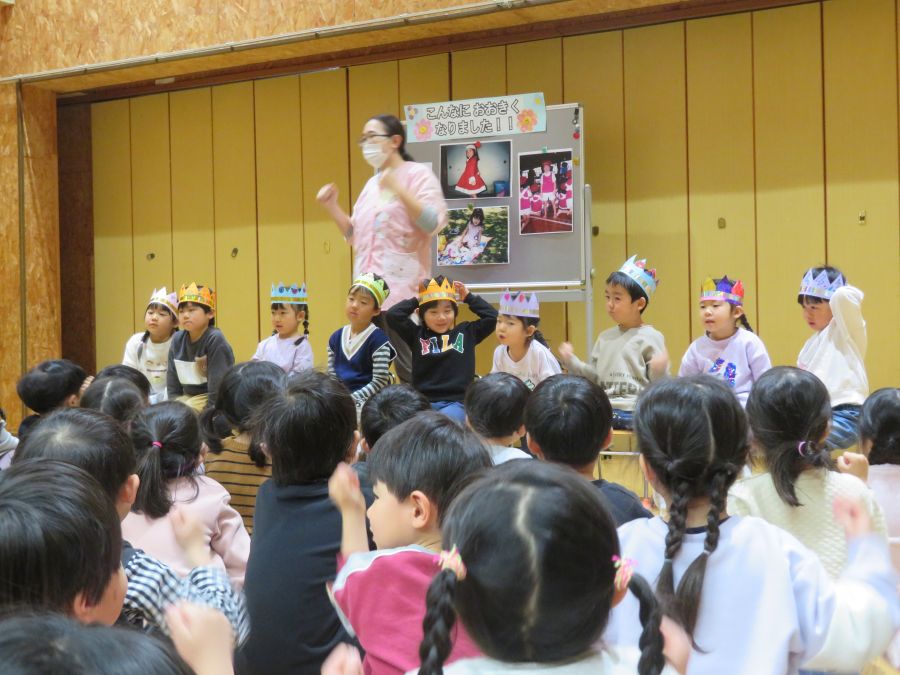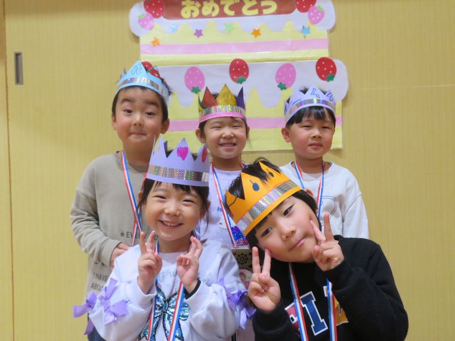 2026年02月03日(火) 1月生まれの誕生会(4・5歳) 1月の誕生日のお友達おめでとう! 先生たちが小さい頃の写真を見て、クイズをしました。 先生たちの4~6歳頃の写真をみて、「かわいい!!」・「誰かな?」と楽しそうに予想する姿がありました。当たると、大喜びでした。みんなも大人になるのが楽しみですね。 誕生日の子も大きな声でインタビューに答えることができました。みんなからお祝いもしてもらい、大きくなったことを喜びました。 もどる