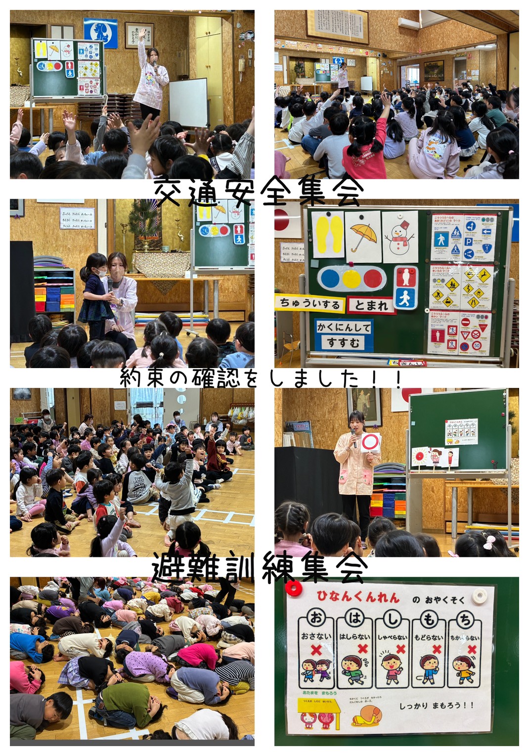 交通安全集会・避難訓練集会に参加しました。1年間の振り返りをして、安全に過ごせるよう確認していきました。