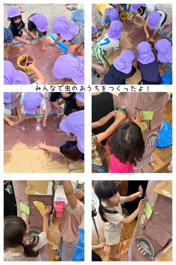 藤組さんは、段ボールで木(虫のお家)を作りました。昆虫の特徴をとらえながら友達と楽しく製作していました。