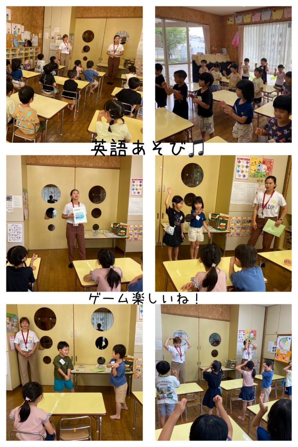 橙組さんは、講師の方と一緒に英語を楽しみました。英語での質問も慣れてきて、大きな声で返せるようになってきました。新しい単語を覚えたり、ジェスチャーゲームをしたりと、楽しく英語に触れています。