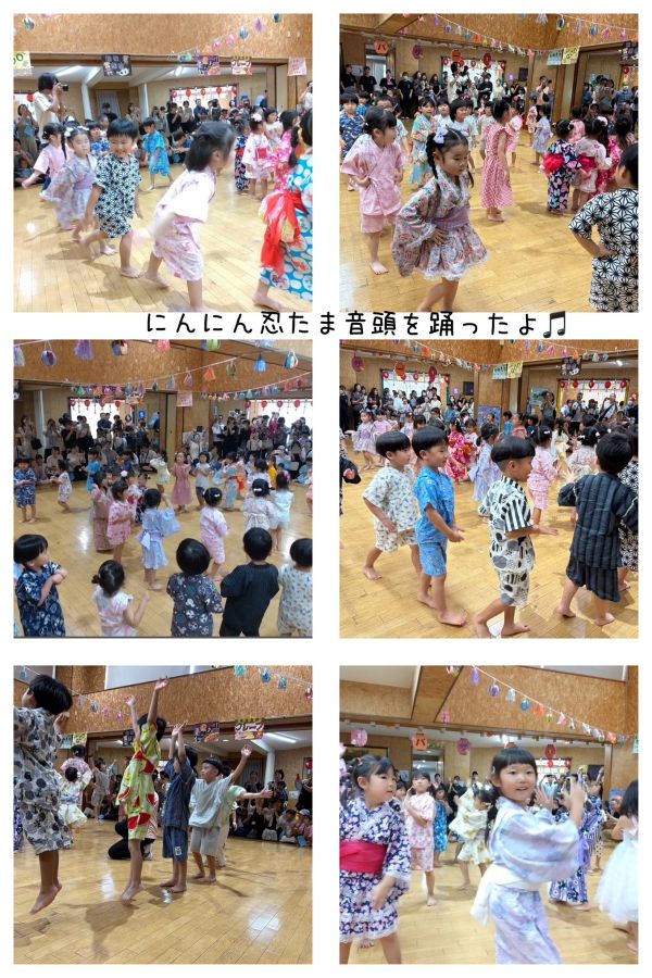 当日は、保護者の方と一緒に登園し、いつもとは違う雰囲気に気分も上がっていましたよ。 練習していた盆踊りも楽しく踊ることができました。