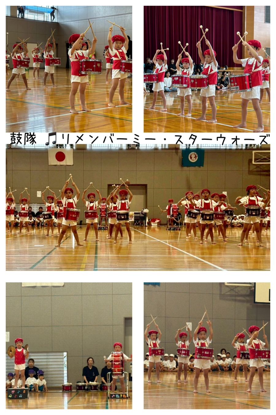 5歳児は鼓隊にも挑戦し、重たい太鼓を持って、音楽に合わせて叩いたり、移動を行いました。5歳児ならではのカッコいいを見せてくれました。
