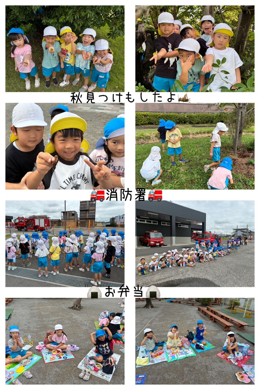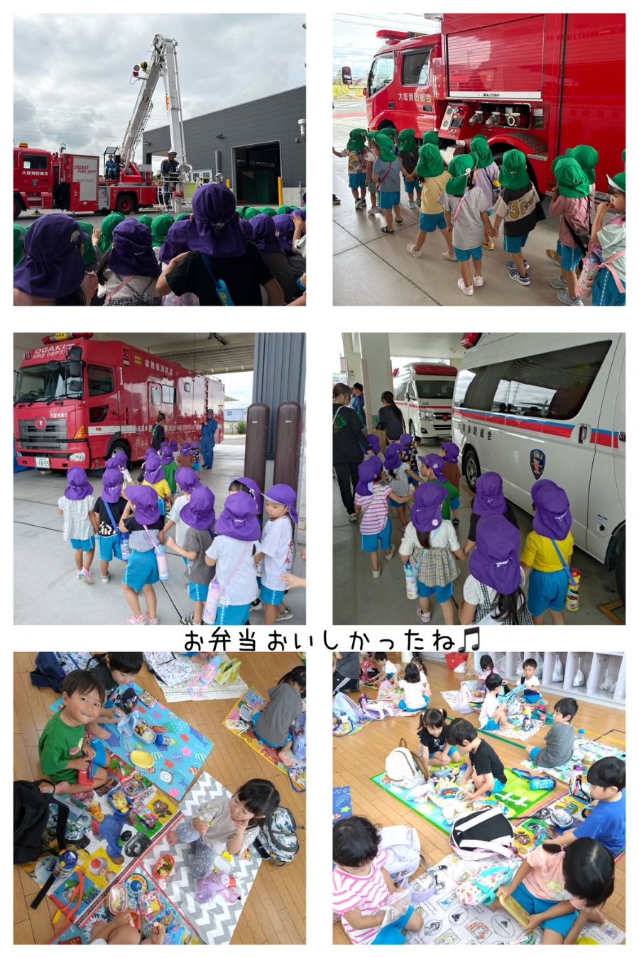 3歳児は北消防署まで、4・5歳児は楽田公園へ行きました。