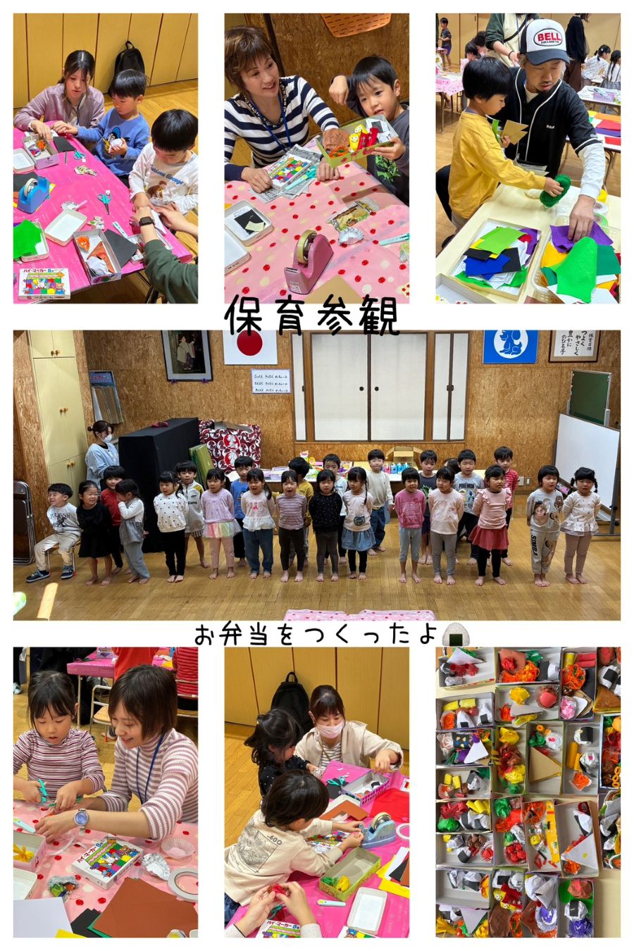 白組は、廃材や折り紙等を使って、お弁当を作りました。お弁当箱に何を詰めようか話し合い、どんな風に作ろうか考えながら、楽しく作ることができました。美味しそうなお弁当ができました。