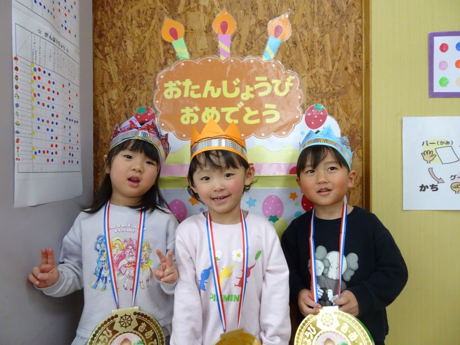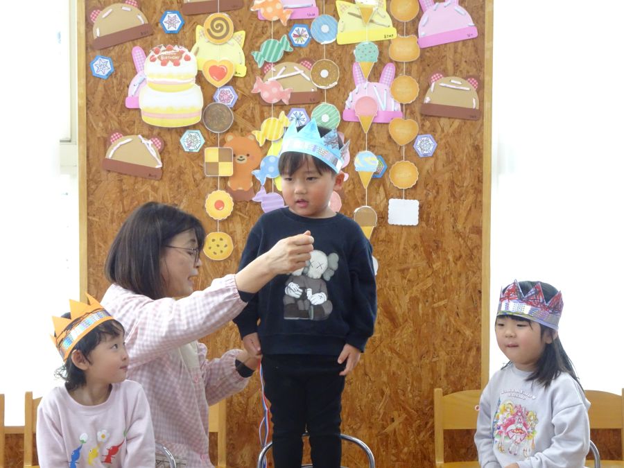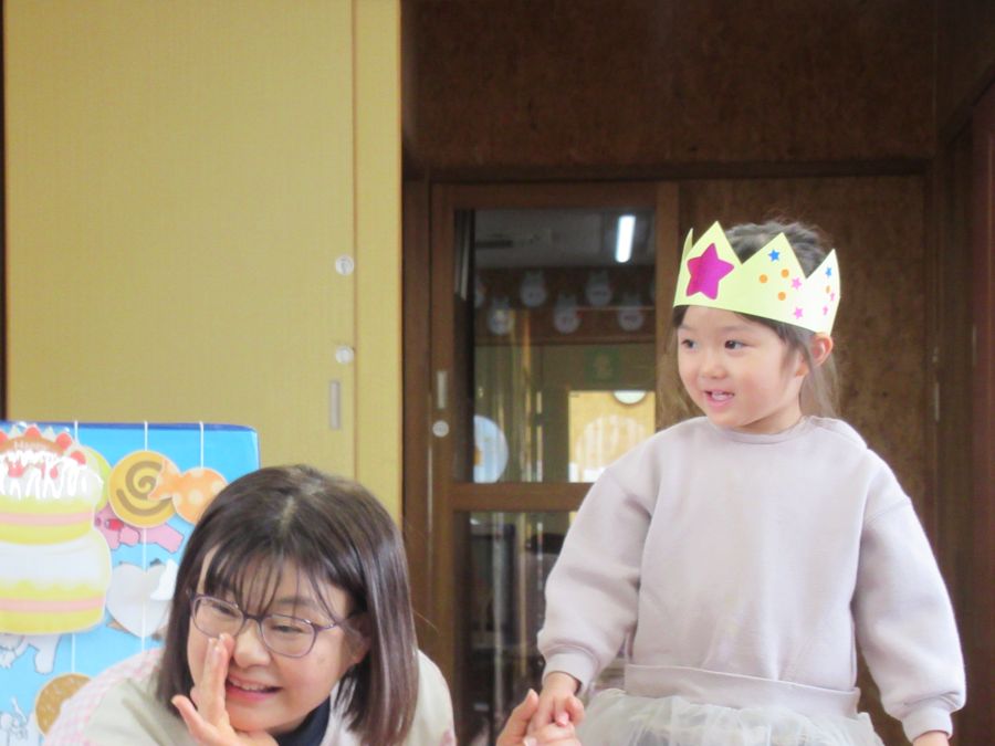 2026年02月03日(火) 1月生まれの誕生会(3歳・未満児) 1月生まれのお友達、お誕生日おめでとう!! ポケットの中からどんな物が出てくるのか、当てっこクイズをしました。ポケットの中から、クッキーや、アイス、ドーナツ・ケーキなどが出てくるととても大喜びで見ていましたよ。可愛い形や、美味しそうなものに思わず、食べたくなっていましたよ。 誕生日の子も、恥ずかしがりながらもしっかりとインタビューに答えることができました。 みんなからも歌のプレゼントをしてもらい、お誕生日をお祝いしました。 もどる