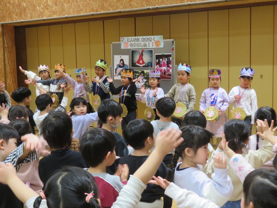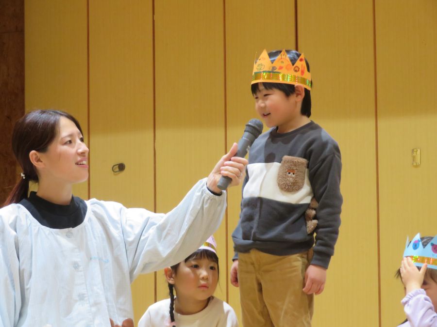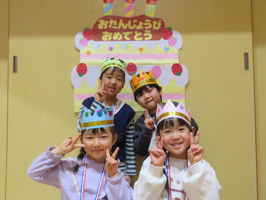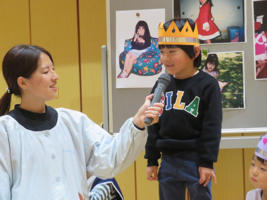 2026年02月03日(火) 1月生まれの誕生会(4・5歳) 1月の誕生日のお友達おめでとう! 先生たちが小さい頃の写真を見て、クイズをしました。 先生たちの4~6歳頃の写真をみて、「かわいい!!」・「誰かな?」と楽しそうに予想する姿がありました。当たると、大喜びでした。みんなも大人になるのが楽しみですね。 誕生日の子も大きな声でインタビューに答えることができました。みんなからお祝いもしてもらい、大きくなったことを喜びました。 もどる