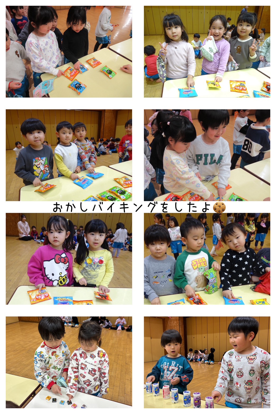 お菓子バイキングを行いました。ほしいお菓子を「これ下さい!」と店員さんに声をかけ、買うことができました。